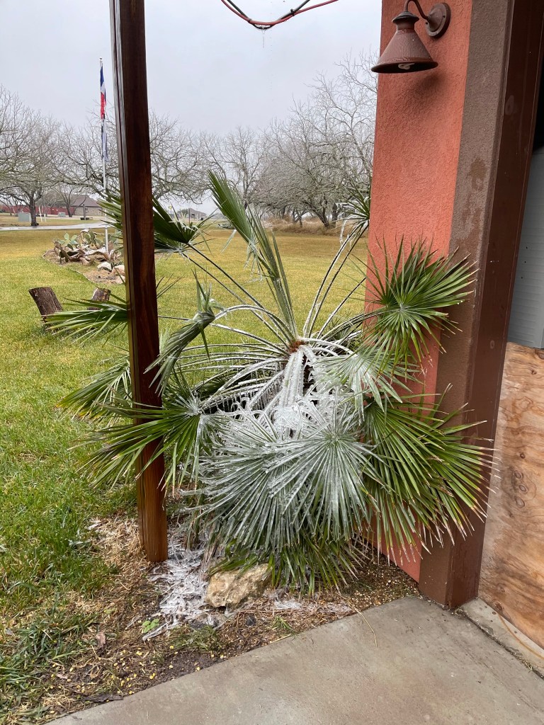 We started hearing talk of a “cold front” coming our way. Now, in Colorado, a cold front is something to pay attention to. But in our experience in Texas so far, a cold front meant the temperature was dropping from 80 to 60. No biggie. People starting stocking up on groceries, there were lines for fuel, the weatherman was getting more excited in his forecast by the day. We decided we might want to wrap the well pipes, unhook the hoses, bring in some firewood, just in case…