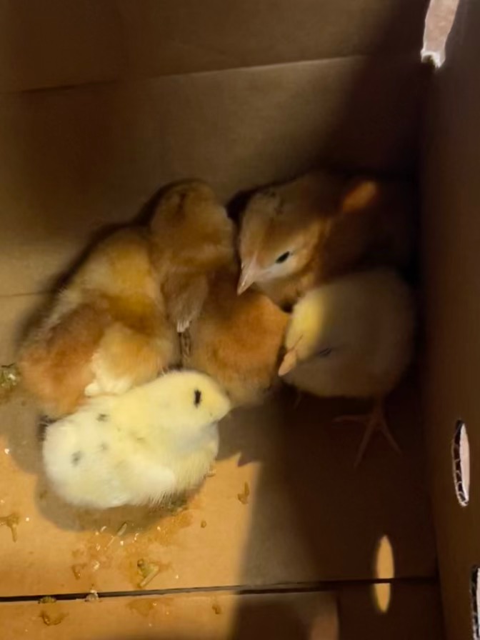 One of our neighbors bought 25 chickens. Then those chickens laid eggs. He thought he would try to incubate some and see if they hatched. They did. All of them. He said he had baby chicks running everywhere and asked if we wanted some. I was not present for this conversation or would have said, “No, thank you.” But Josh said, “Sure! Why not!” We were going to raise some baby chicks after all. We knew we were going to be heading to Dallas for Josh’s doctor’s appointments soon so Josh told him we would come get them in a week or so. A couple days later, Omar pulled up with a box and said, “come pick out your chickens!”