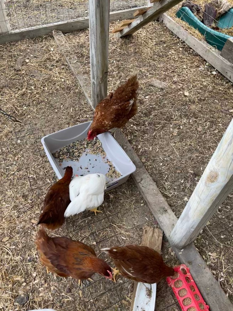 Lesson learned for next time… when they are small, give them little leg bracelets with numbers. When they get big, they all look the same! So we have Vern, Shirley, Thelma, Louise, Maude, and… the babies 😁