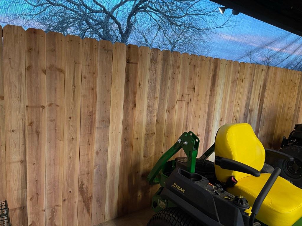 We’ve had to trim trees overgrown for two years, remove bushes that have died, un-bury garden edging, and remove poisonous Oleander plants from the carport. Josh replaced those with a beautiful cedar fence to match the back deck.