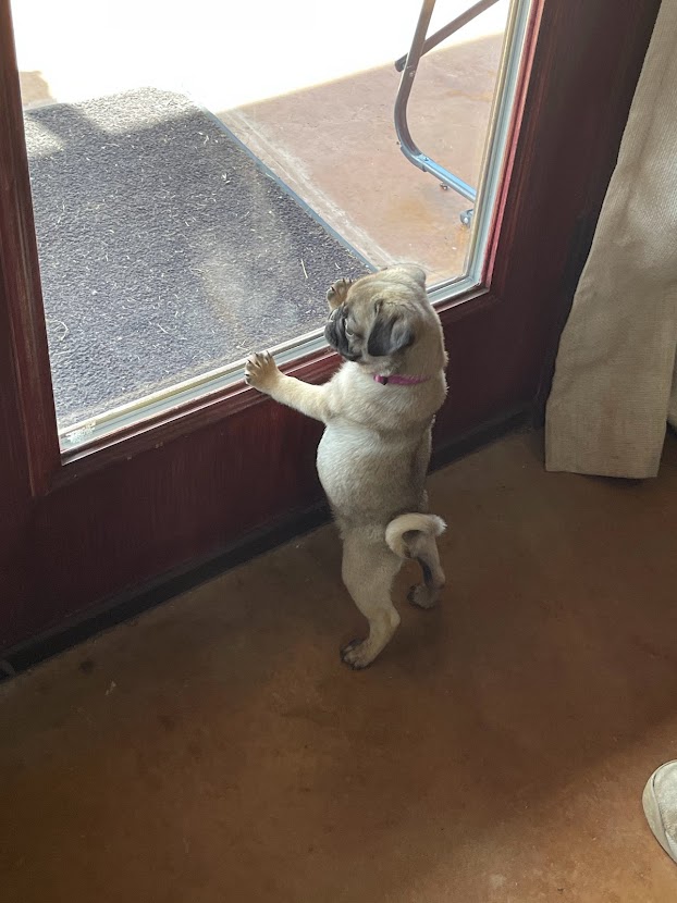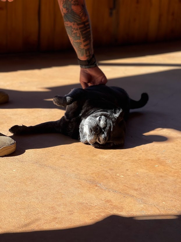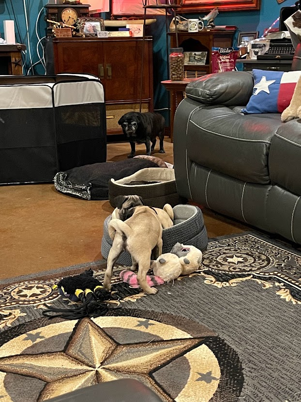 When we lost Mercedez, we knew Rockee wouldn’t be an only pug for long. We just needed the right fit to come along. Over the next few months, we found several pugs for adoption but by the time we reached out, they were already adopted out. We knew God would put the right one in our lives when He felt we were ready. Until then, Rockee was soaking up “only pug syndrome” π