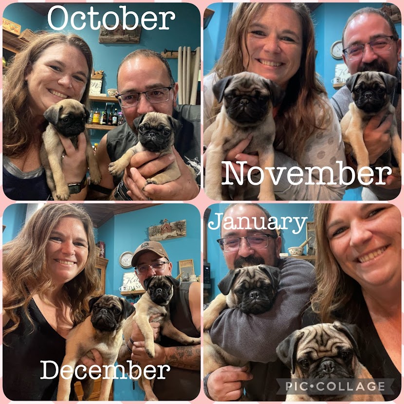 Our first few months with the puppies went so quick. It seemed as though they changed from tiny puppies to teenagers overnight! They love to play with anything and everything, typical puppy behavior. Howdee loves to give lots and lots of slobbery kisses, and loves to bite Josh’s ear. Penelopee does not tolerate Josh giving attention to any other animal but her. She loves to burrow under pillows and covers and to have her chest rubbed. The quickest way to get their attention is to pull out the laser pointer AKA “the red dot”.