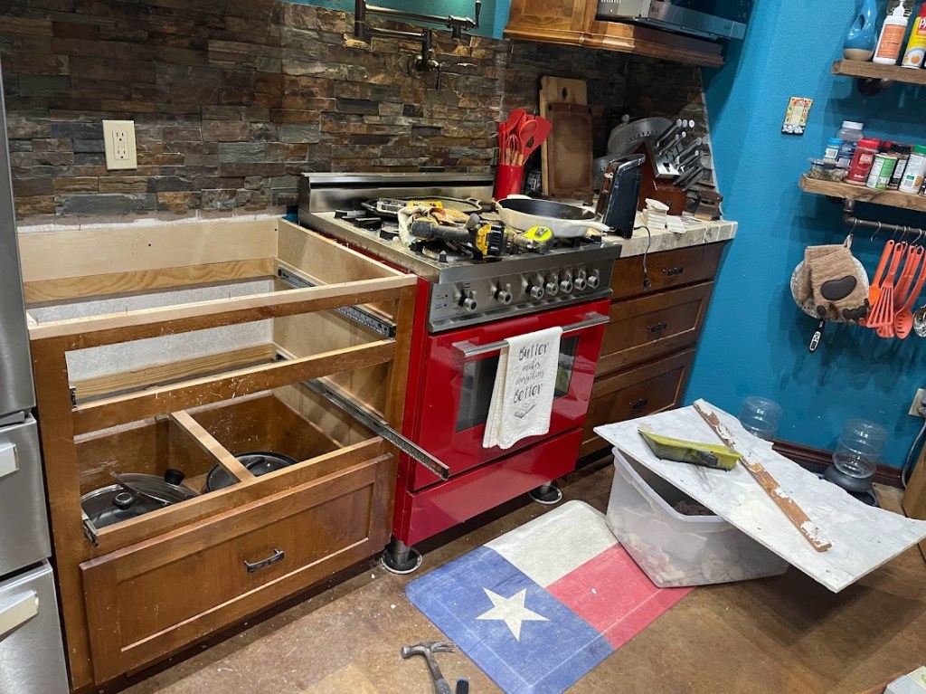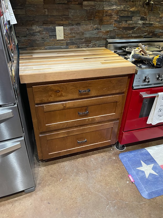 I knew I wanted to replace them with butcher block countertops for the counters that sat on either side of the stove. For my breadmaking and dinner prep, this just made more sense. I found a seller on Etsy who would create a custom sized counter top for us. Josh surprised me with them as a Valentine’s Day gift!