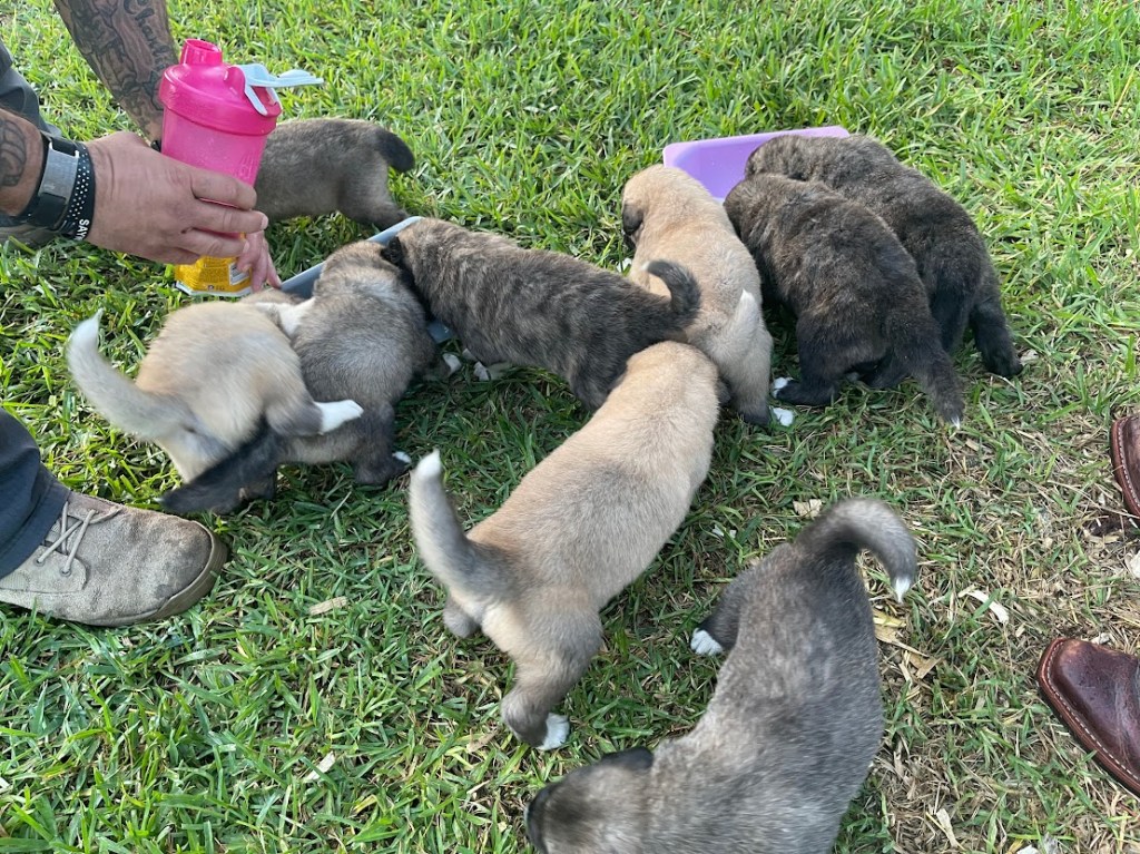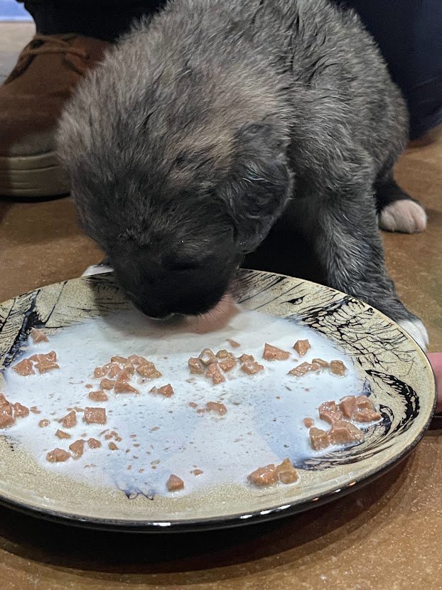 When the puppies were five weeks old, we introduced them to puppy food mixed with milk supplement. They absolutely loved it!