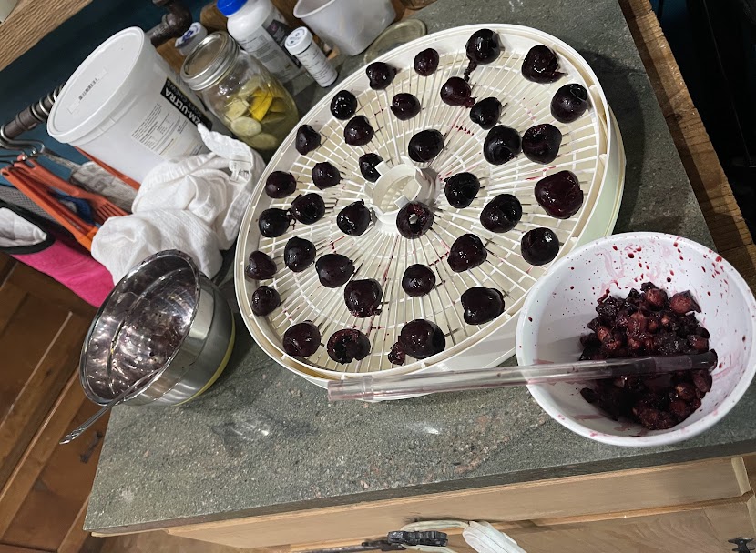 If you’ve never dehydrated anything before, try it. It really is simple! The hardest part? The waiting! Most things take around 12 hours or so to completely dehydrate, but can sometimes take 24 hours or even longer (ahem, frozen cherries…). The process of dehydrating basically cooks your item at a low temperature to remove all of the moisture. You want to make sure your item is completely dehydrated though, or it can mold. The best way I found to determine if it’s fully dehydrated is the condensation test. You take a piece of whatever you are dehydrating and immediately, while still hot, place it either in a small glass jar with a lid or a sandwich baggie and seal it. After about five minutes of sitting, if there is no condensation formed or forming on the walls of the jar or on the baggie, your item is fully dehydrated and ready for long term storage. If you’re going to use up your item within the next year, you can just use a mason jar to store. If you’re hoping for longer storage, you will need to use a mylar bag with an oxygen absorber to keep things fresh for longer. I learned that there are some things that are amazing dehydrated (peaches… yum!), and some things are not (I’m looking at you, Kiwi!).