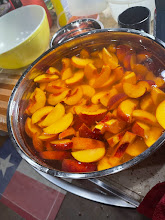 I could hardly wait to get home to start processing these peaches. I dehydrated some, I canned some, I made some into peach preserves, we gave some to the Garza family, and I froze the rest to enjoy during the winter. I also saved all of the peach skins and pits to make jelly!