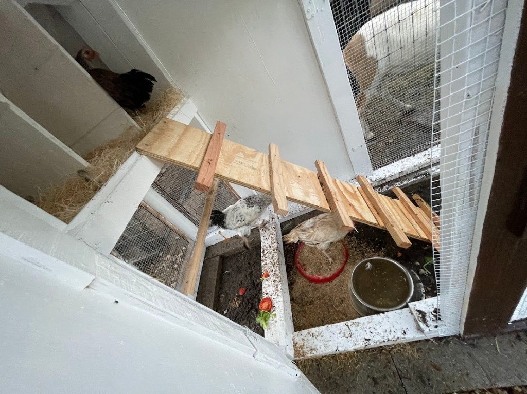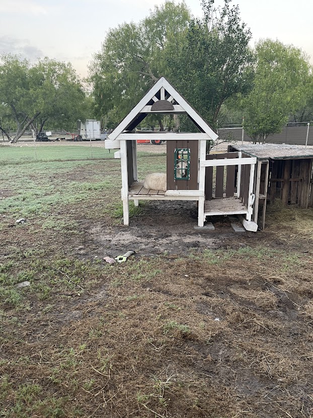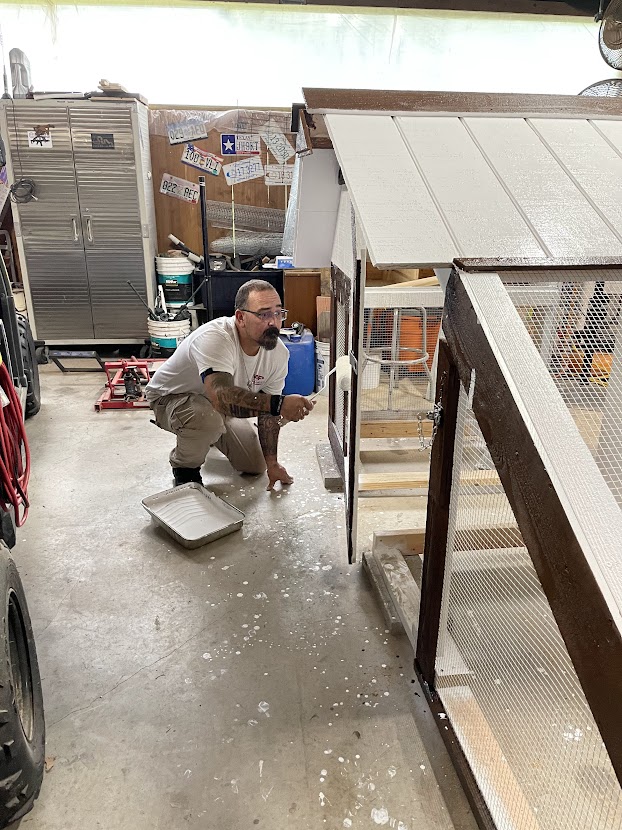 Our major summer projects have come to a close. The latest thing we built was a “quarantine coop” for sick or injured chickens. The one we had been using was a former dog kennel. Considering things rust out here when they are outside for 45 seconds, let’s just say the door was hanging on by zip ties… it was time for an upgrade! The former kennel was housing “Queen Elizabeth” (before the actual Queen passed!) who suffered from “curled toe paralysis“. Basically, this is a Riboflavin deficiency. It is not contagious, so we could have kept her with the other hens, but they were picking on her and bullying her. To the quarantine coop she went. Josh decided that since she was going to be in that coop for some time, she deserved more room to roam. He set to building.