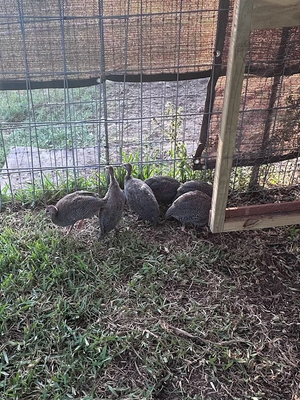 We have not added any new animals to the ranch in a while. We had talked about adding guinea fowl to our flock. Many ranchers call guinea fowl natural tick repellant. Guineas love to eat ticks and other bugs. They are also great protectors for your chicken flock. They alert when they see a predator, they will also attack snakes and other rodents. We had not come across anyone selling keets (baby guineas) until one day, driving down the road, we saw a sign. Literally, a woman holding a sign that said “KEETS” 😁 Well guess what, y’all…